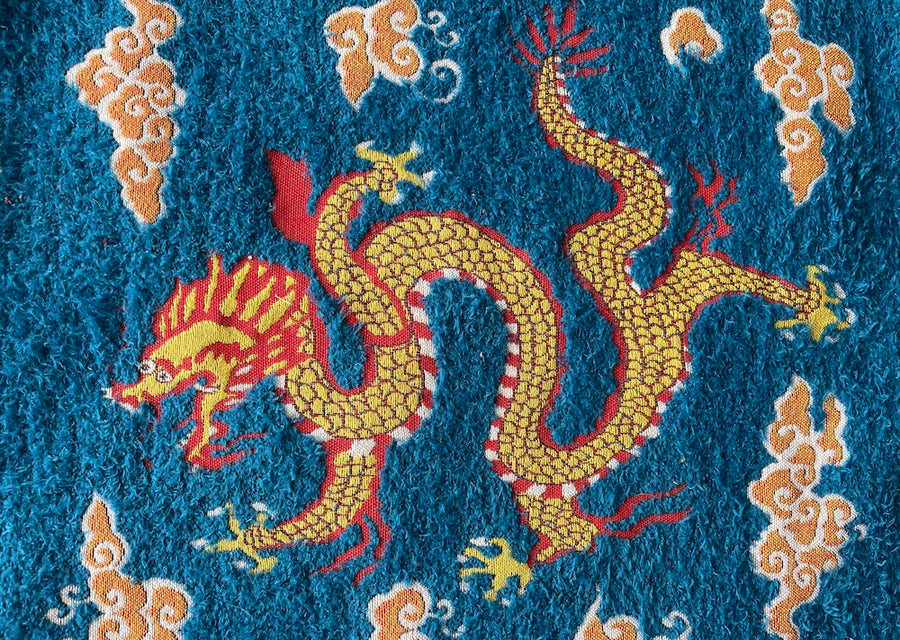 Panel: Unique Embroidered Gold & Crimson Chinese Dragon & Clouds
