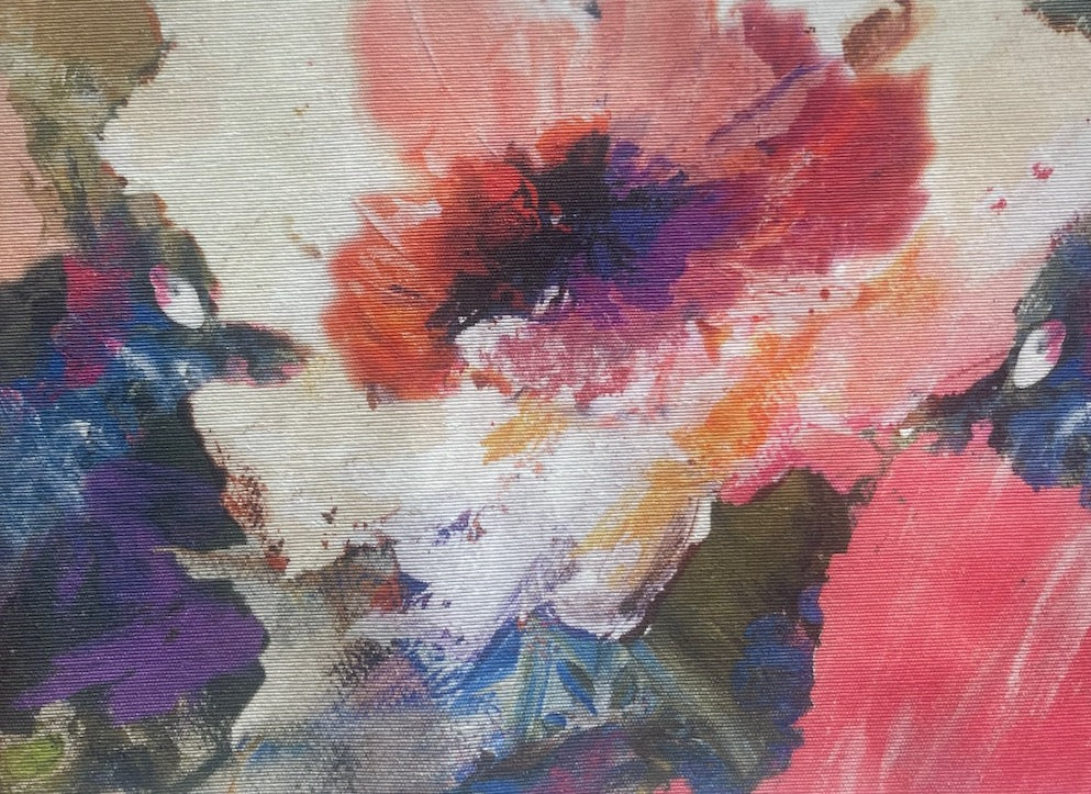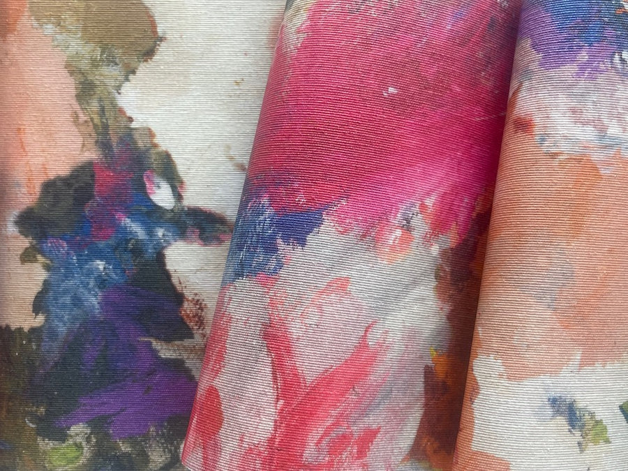 A water-resistant, laminated cotton in a painterly print of mango, honey, blueberry, peach, coral, French pink, and raspberry springtime blossoms on an off-white background - practical, wipeable, and handsome, this laminated cotton is perfect for bags, totes, tablecloths, sit-upons, and cushion covers. The back side may be ironed. Made in Spain. 100% cotton with lamination. 54" wide.