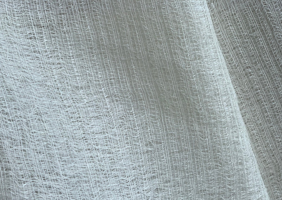 A special extra-wide, double-weave linen in off-white, with a handsome mock rattan texture. Although this linen is semi-sheer, it has a stiffer body, making it great for drapes, shades, or door curtains. Made in Belgium. 100% linen. 116" wide.