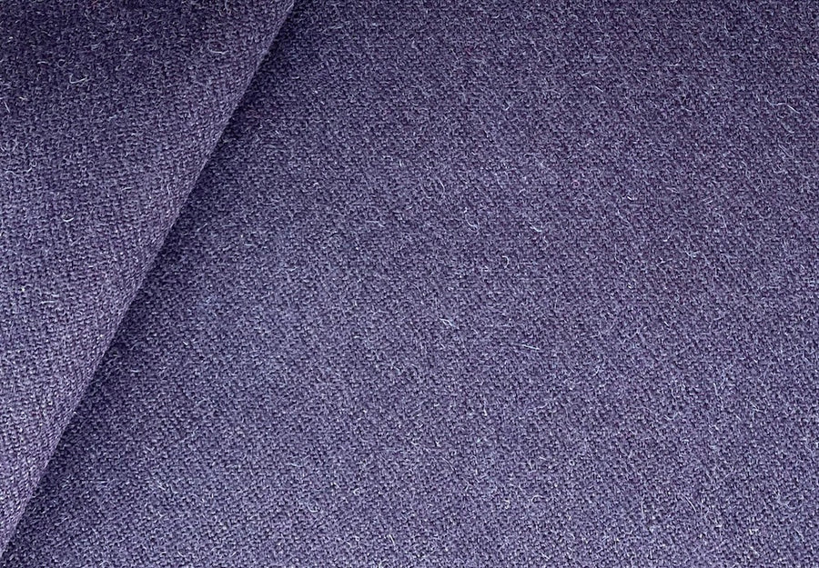 A high-end wool blend in heathered deep eggplant - this contemporary wool blend is great for upholstering furniture, drapes, or accent pillows. Made in Italy by a prestigious upholstery mill. 65% wool, 20% nylon, and 15% alpaca. 57" wide.