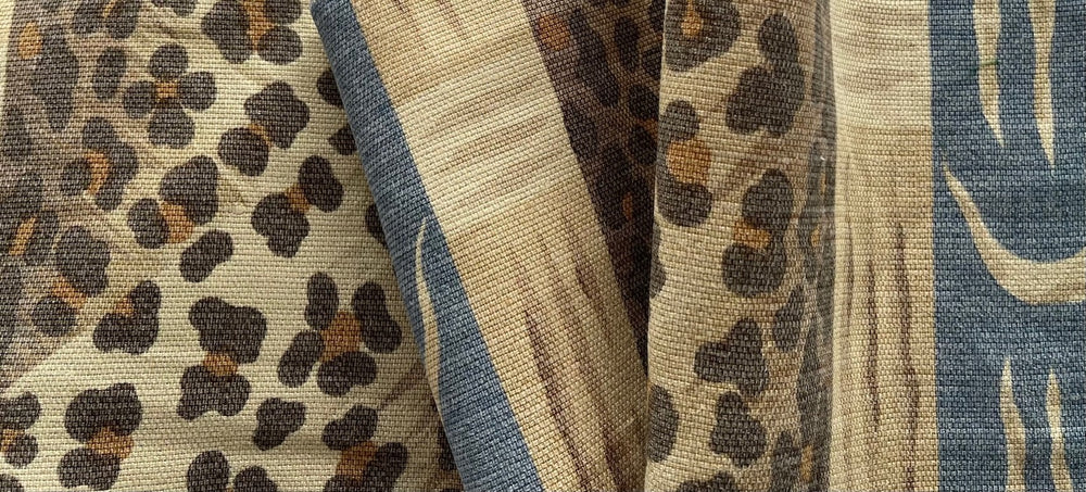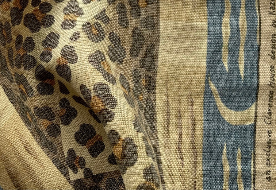 A couture mid to heavy-weight linen in lengthwise stripes in leopard and denim blue abstractions - this sophisticated, hefty linen is perfect for jackets, coats, or home decoration projects. Made in Italy by a well known house. 100% linen. 56" wide.