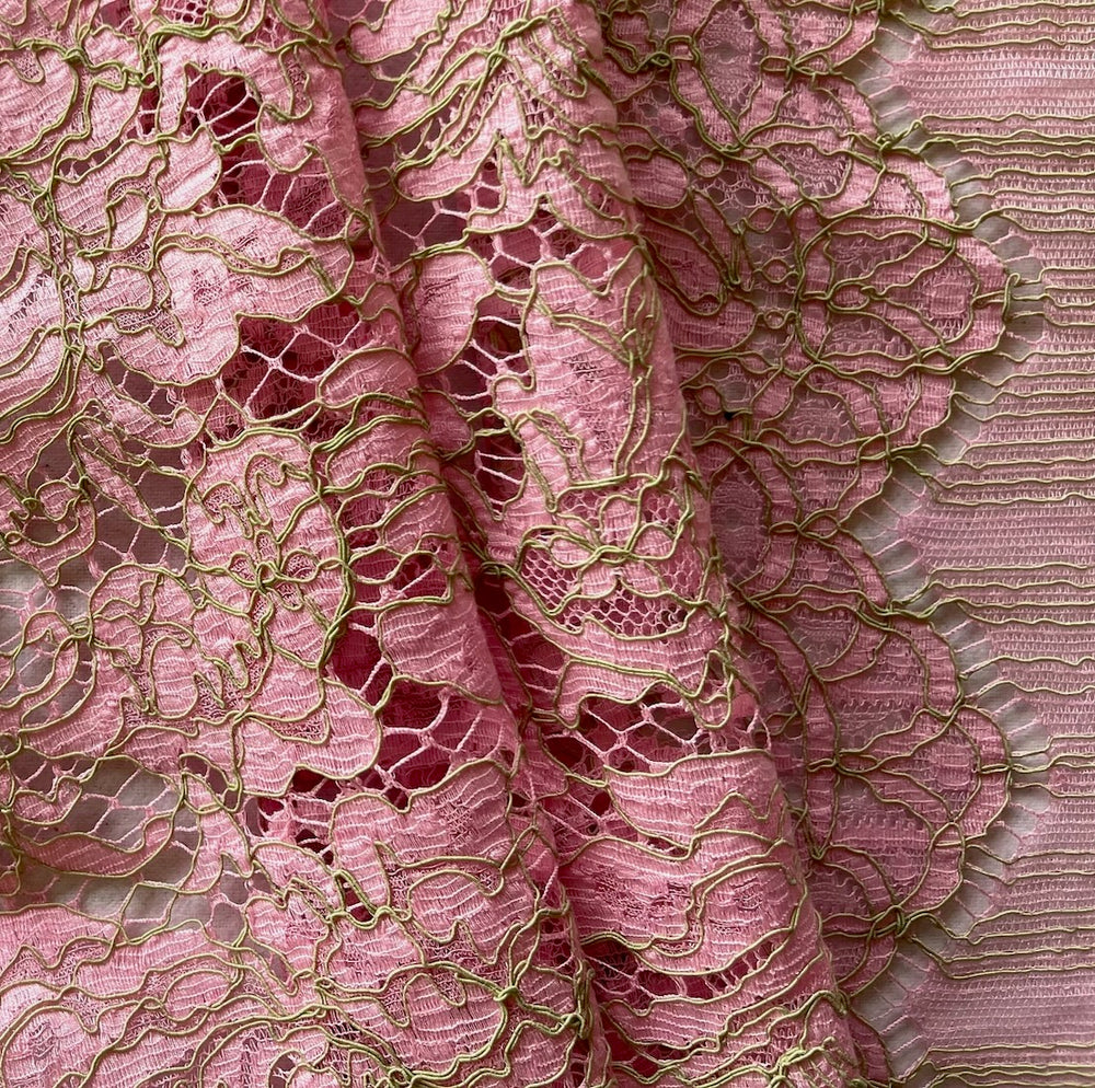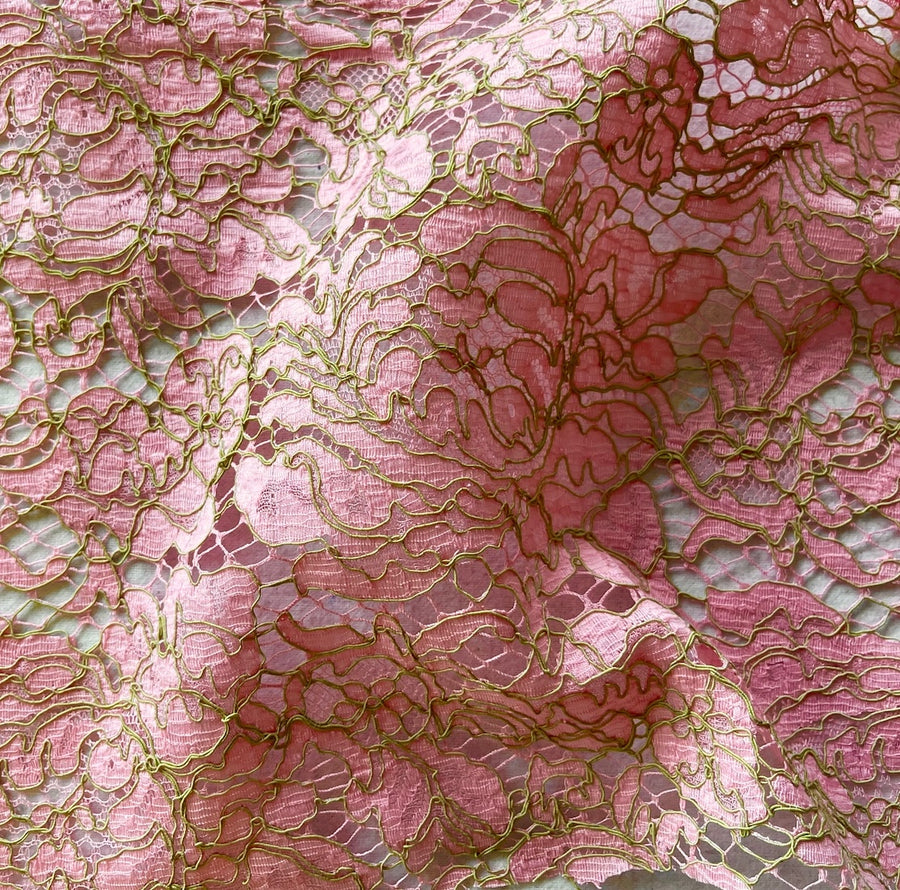 Peppermint Pink & Key Lime Cotton Alençon Lace Fabric (Made in France)