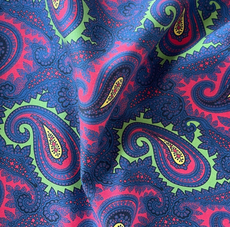 A rayon and cotton challis lining in an exuberant paisley print on a sea foam green and French pink background. Rayon Bemberg linings are our favorite lining for all fabrics including silk, wool, coats, and linen. Rayon bemberg is cool to the touch, smooth, non-cling, and cold water washable. Suitable for lining or garments, such as blouses, skirts, or dresses. Made in Italy. Rayon viscose and cotton. 54" wide.