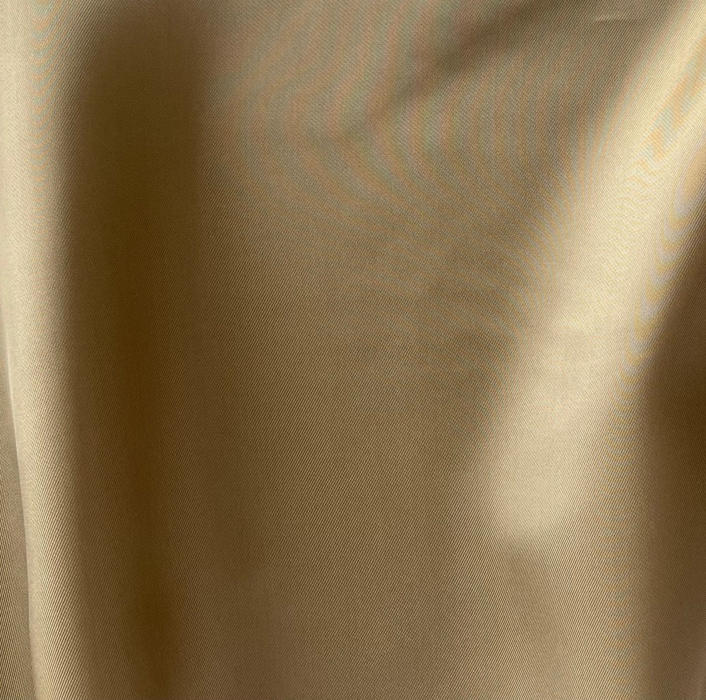 Burnished Gold rayon bemberg lining. Rayon Bemberg linings are our favorite lining for all fabrics including silk, wool, and linen. They're cool to the touch, smooth, fluid, non-cling, and cold water washable. Made in Italy. 100% rayon viscose bemberg. 54" wide.