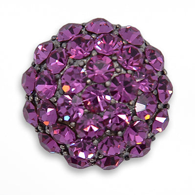 Domed silver button covered with a cluster of hot pink rhinestones. Metal shank backing. Made in Italy.
