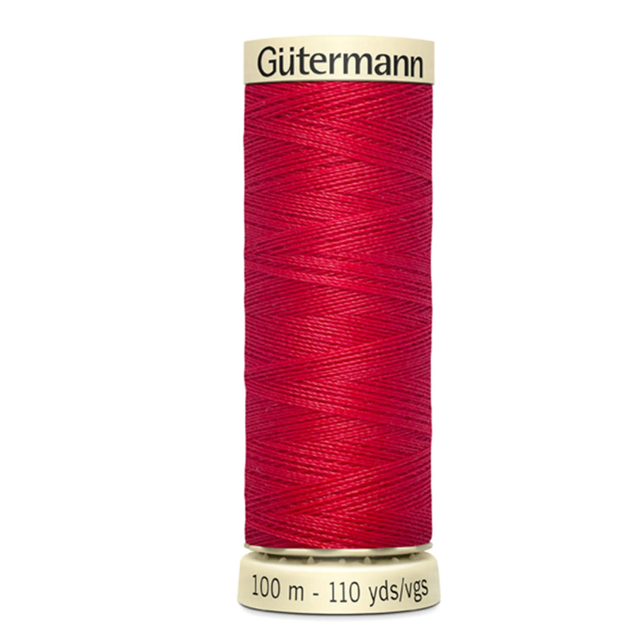 410 Scarlet. Gutermann Sew-All Thread combines the excellent sewing properties of silk with the durability and strength of polyester. 100% polyester. 50 weight long staple polyester thread. 100m/110 yards