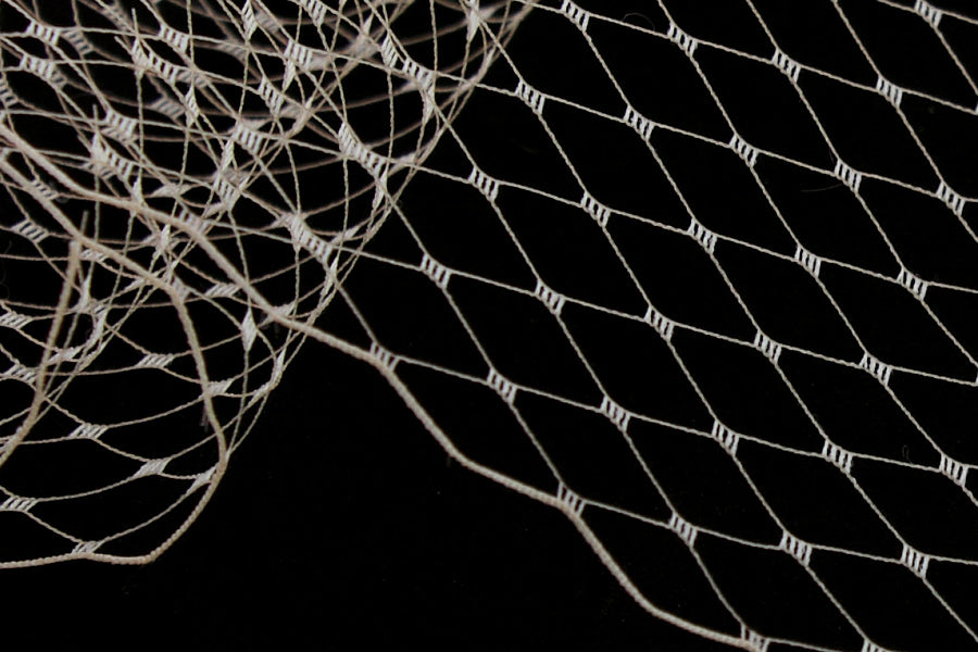 9" wide veiling in tasteful beige. This lovely millinery veiling is called Russian/French veiling or netting. It is perfect for making romantic bridal birdcage veils, trimming sophisticated hats, accessorizing fascinators, or adding a charming vintage touch to historical costumes. This nylon veiling is 9” wide, with 1 cm. wide diamond shaped openings, narrowly scalloped edges, and is sold by the yard and increments per yard. The minimum order is 1 yard.