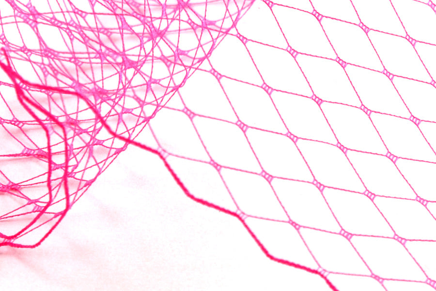 9" wide veiling in fiery hot pink. This lovely millinery veiling is called Russian/French veiling or netting. It is perfect for making romantic bridal birdcage veils, trimming sophisticated hats, accessorizing fascinators, or adding a charming vintage touch to historical costumes. This nylon veiling is 9” wide, with 1 cm. wide diamonds and narrowly scalloped edges.
