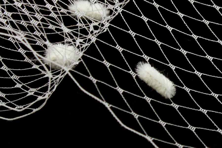 9" wide veiling in creamy ivory. This lovely flocked millinery veiling is called Russian/French veiling or netting. It is perfect for making romantic bridal birdcage veils, trimming sophisticated hats, accessorizing fascinators, or adding a mysterious touch to historical costumes. This nylon veiling is 9” wide, with 1 cm. wide diamond shaped openings, scattered chenille flocklets spaced 5" apart, narrowly scalloped edges, and is sold by the yard and increments per yard. The minimum order is 1 yard.