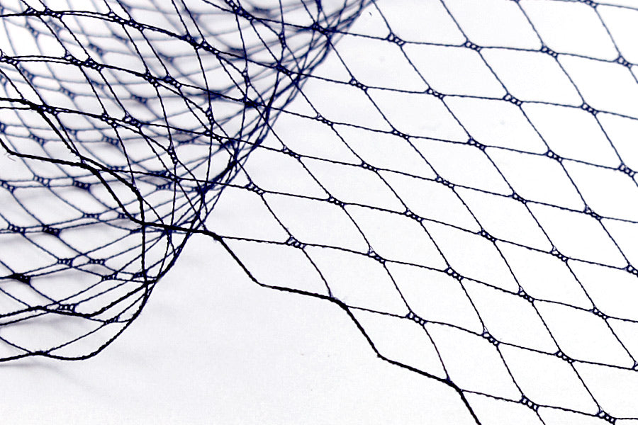 9" wide veiling in navy blue pink. This lovely millinery veiling is called Russian/French veiling or netting. It is perfect for making romantic bridal birdcage veils, trimming sophisticated hats, accessorizing fascinators, or adding a charming vintage touch to historical costumes. This nylon veiling is 9” wide, with 1 cm. wide diamond shaped openings, narrowly scalloped edges, and is sold by the yard and increments per yard. The minimum order is 1 yard.