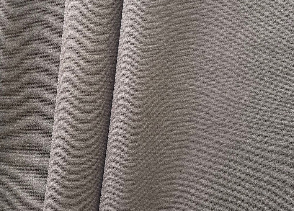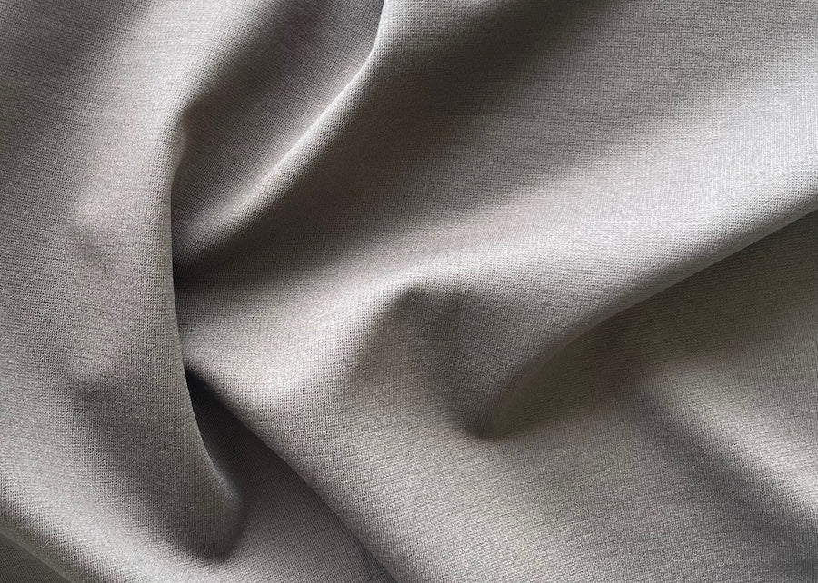A mid-weight rayon blend ponte double-knit in an elegant elephant greige - with a touch of lycra for comfort, this ponte is great for travel cand perfect for a sheath dress, a skirt, jumper, pants, or a comfy jacket. 65% rayon viscose, 30% polyamide, and 5% lycra. 59" wide.
