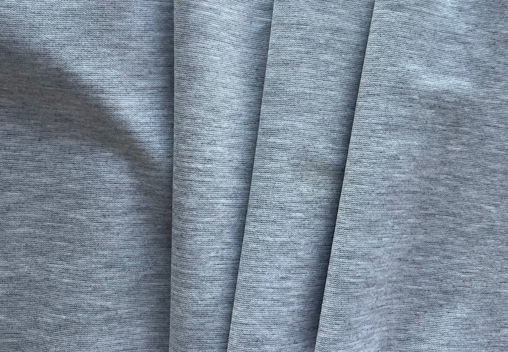 A rayon blend ponte double-knit in SF fog grey - great for travel, this double-knit is perfect for a sheath dress, a skirt, jumper, or a comfy jacket. 66% rayon, 30% polyester and 4% lycra. 60" wide.