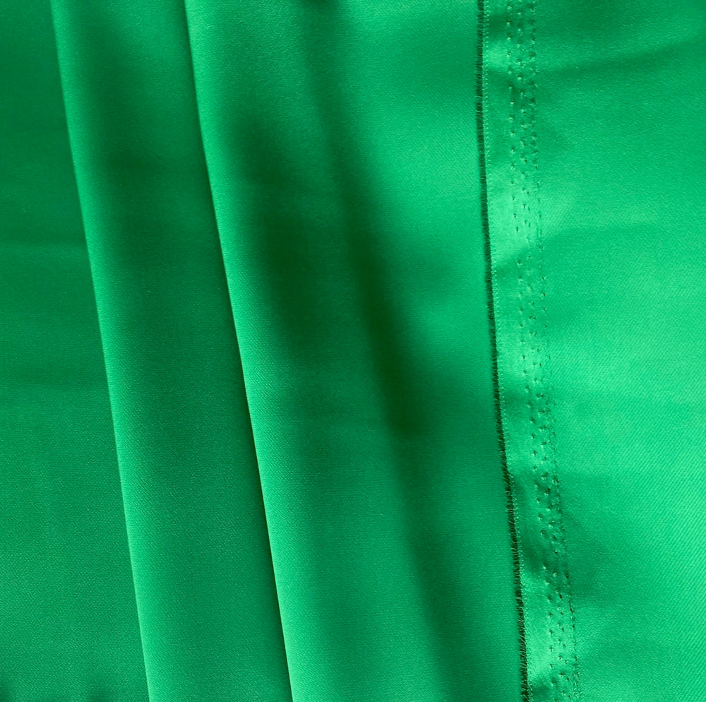 A double-sided, polyester satin twill in a saturated Emerald Green - this fluid, soft satin is perfect for travel-wear, blouses, bridal-wear, or dresses. Made in Korea. 100% polyester. 60" wide.