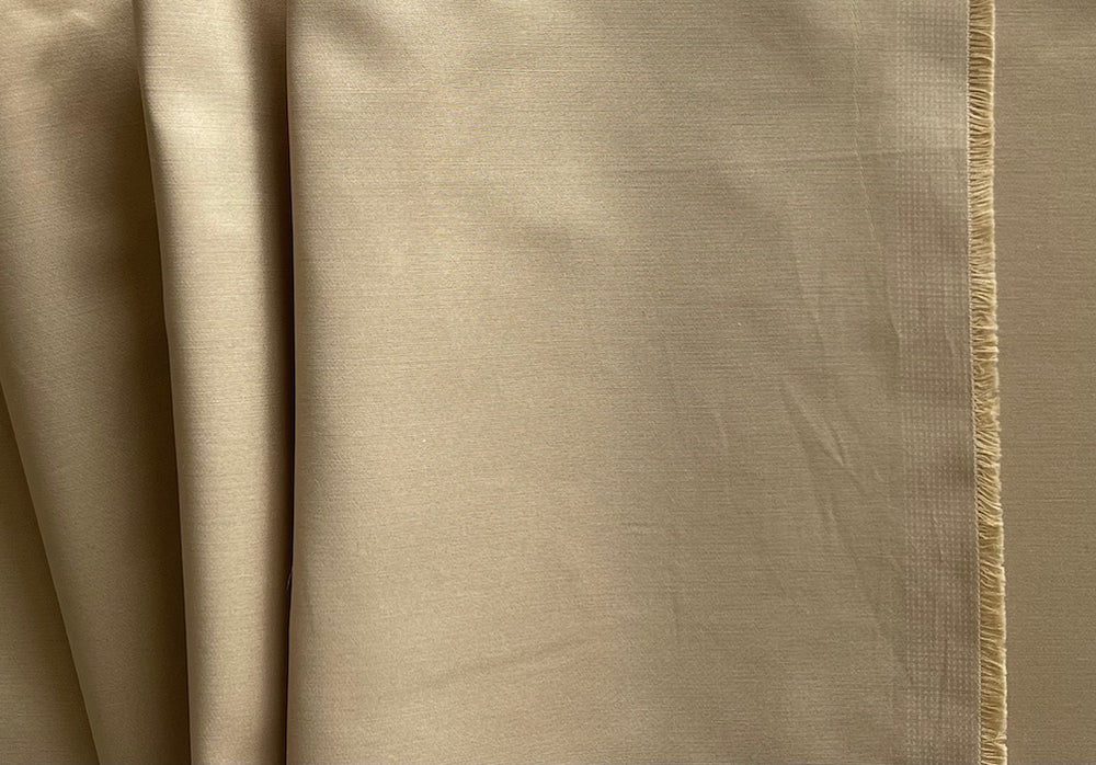 A mid-weight memory-smart (wrinkles can be easily smoothed out by hand) polyester taffeta in classic golden camel - with a matte finish, this crisp, shapeable taffeta is perfect for gowns, gorgeous slim pants, tunic tops, or an unlined summer jacket. Made in Japan. 100% polyester. 57" wide.