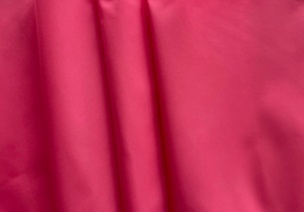 A mid-weight memory-smart (wrinkles can be easily smoothed out by hand) polyester taffeta in watermelon slushy pink - with a matte finish, this crisp, shapeable taffeta is perfect for gowns, gorgeous slim pants, tunic tops, or an unlined summer jacket. Made in Japan. 100% polyester. 59" wide.