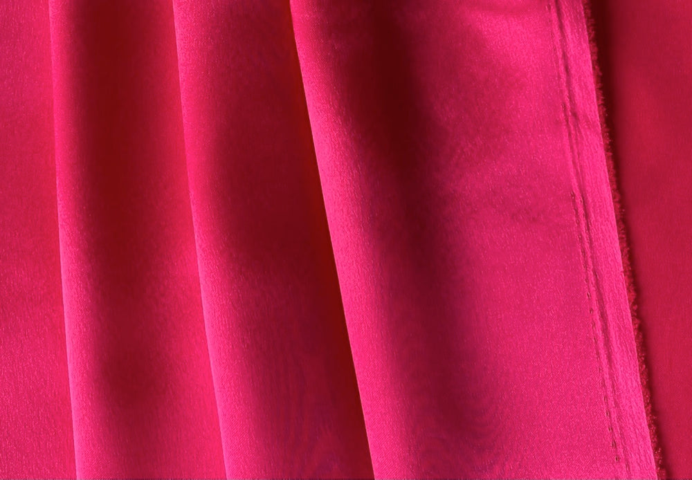 A mid-weight polyester crepe back satin in saturated flaming fuchsia - with a satin finish and a subtle pebbled texture, this drapey, washable polyester is perfect for gowns, prom wear, jackets, or wide-legged pants. 100% polyester. 60" wide.