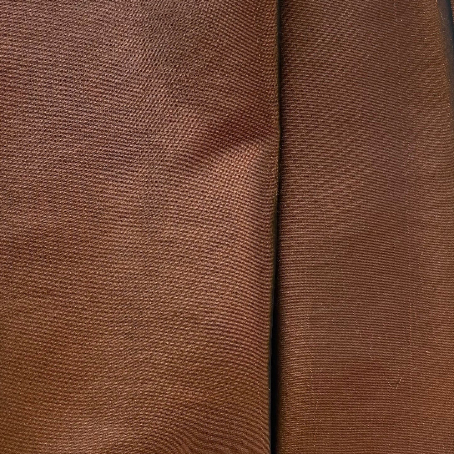 A lighter-weight, airy iridescent polyester taffeta in warm copper rain - this crisp taffeta is cross-woven in orange and black, perfect for costuming, layers, or blouses. 100% polyester. 59" wide.