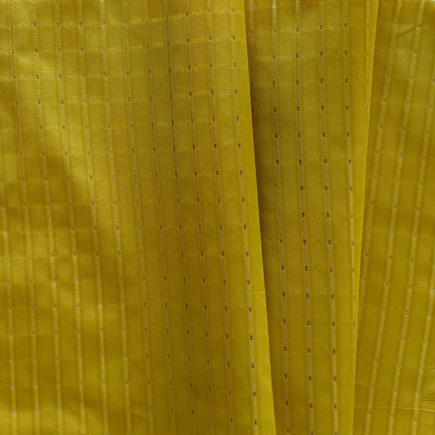 A crisp polyester taffeta in musell yellow  - with a subtle texture of small tone-on-tone squares, this lovely taffeta is perfect for an over-shirt, a summer dress, and a full skirt.  100% polyester. 60" wide.