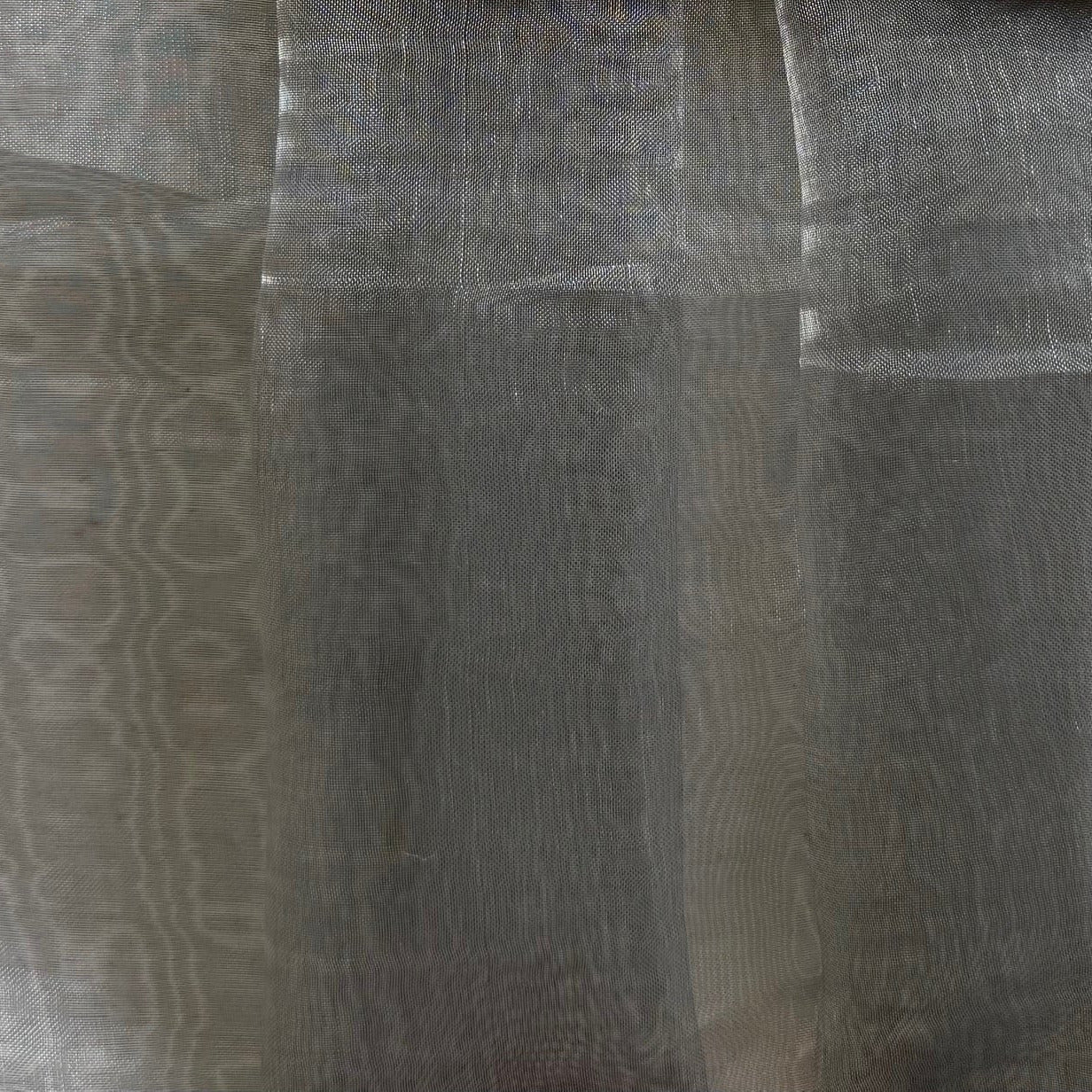 A sheer, iridescent polyester organza in smoke grey cross-woven with silver - this organza is perfect for costuming, layers, petticoats, or translucent sleeves. 100% polyester. 59" wide.