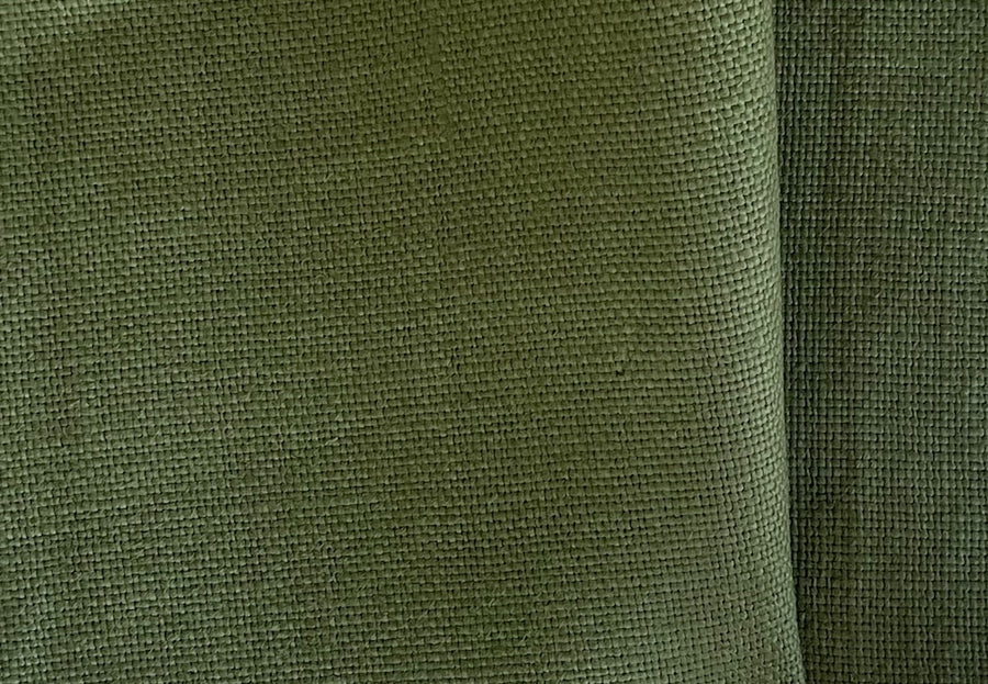 A slubby linen in scrumptious broccoli green - this tightly woven linen is perfect for upholstery, chairs, pillows, headboards, or drapes. Made in Belgium. 100% linen. 54" wide however there are water stains at the 45" line, so 9" is damaged but 45" is not damaged.