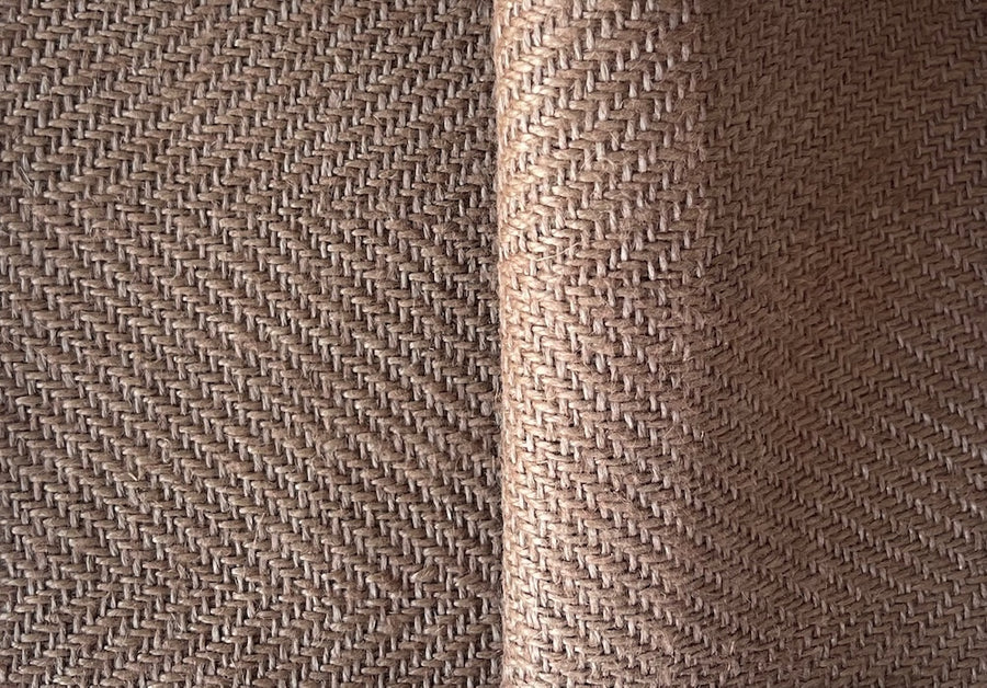 A rough hewn linen with a herringbone weave and in a warm shade of burnt sugar - this linen is a bit stiffer and perfect for upholstery, chairs, pillows, headboards, or drapes. Made in Belgium. 100% Linen. 55" wide.