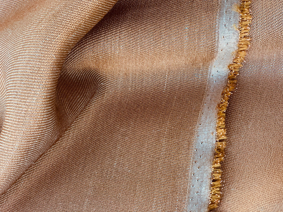 A gorgeous, gleaming linen twill in sparkling metallic copper - this high quality metallic linen is perfect for a stunning coat or jacket, a midi-skirt, or a tablecloth. Made in Belgium. Linen with acrylic metallic threads. 58" wide.