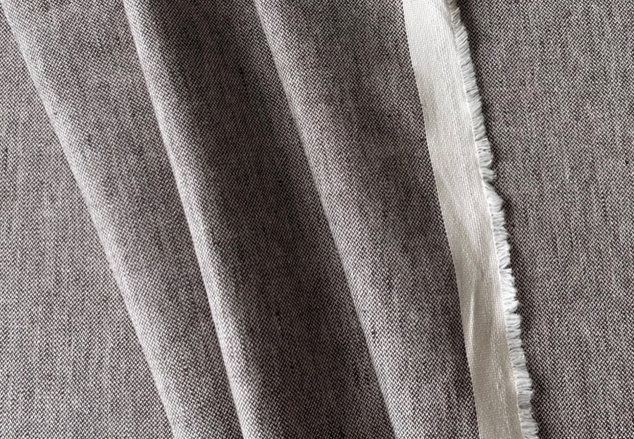 A high-end, mid-weight linen tweed in earthy redwood and snow white - this soft linen is perfect for summer pleated pants, a jacket, or table linens. Made in Italy. 100% linen. 62" wide.