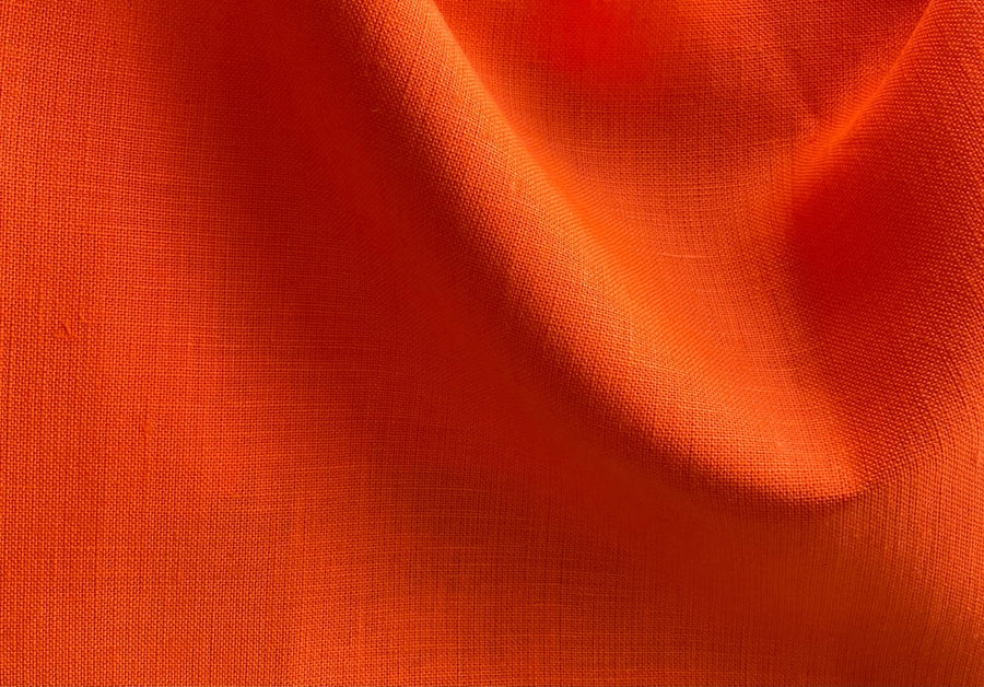 A mid-weight linen in clear mandarin orange - with a slightly stiffer finish, this linen is perfect for dresses, summer shorts, jackets, or accent pillows. Made in Poland. 100% linen. 58" wide.