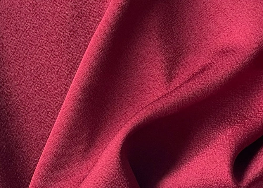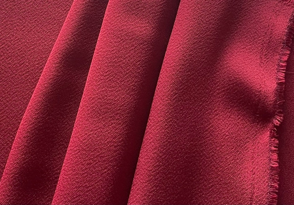 A mid-weight stretch rayon viscose crepe-back satin in burnt Merlot - this elegantly fluid fabric can be used on either the satin or the matte side and is perfect for blouses and dresses. Rayon, acetate, and lycra. 56" wide.