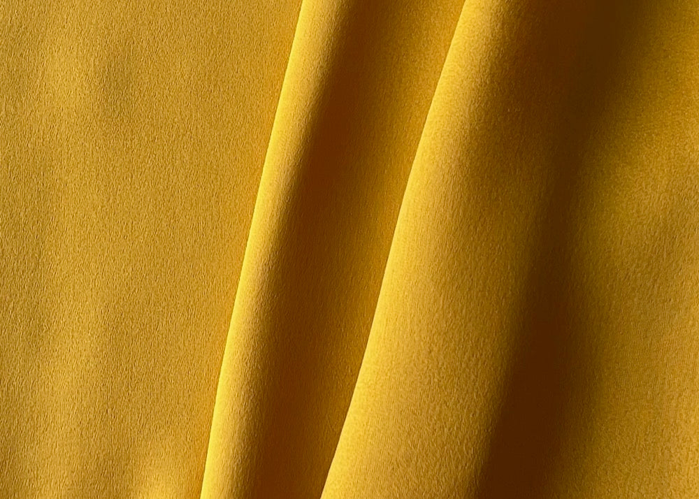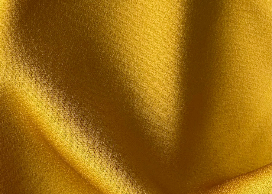 A mid-weight rayon viscose crepe-back satin in curried saffron - this elegantly fluid fabric is perfect for blouses, airy scarves, and dresses. Made in Italy. Rayon and acetate.54" wide.