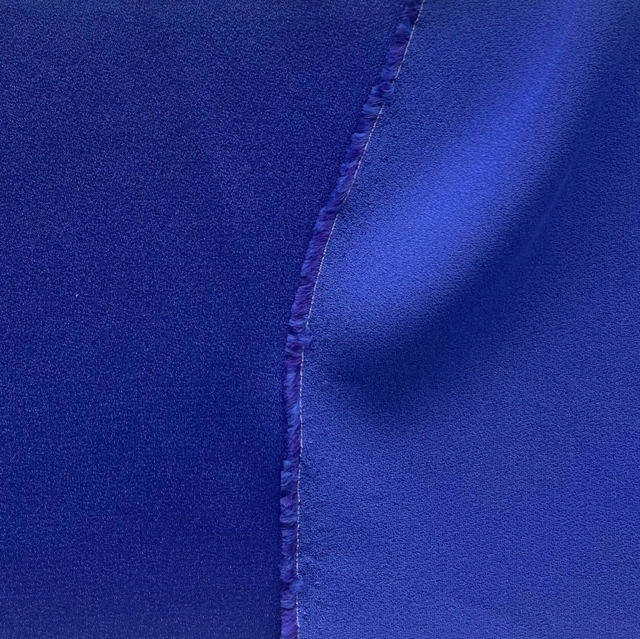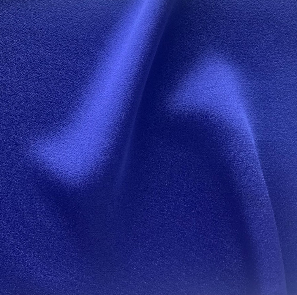 A designer mid-weight, double-sided rayon viscose blend crepe-back satin in Phthalo Blue  - with the front side satin and the reverse matte, this gorgeous, drapey satin is low-wrinkle and perfect for travel-wear, a top, a dress, or full pants. Made in Italy. 50% rayon viscose and 50% acetate. 54" wide.