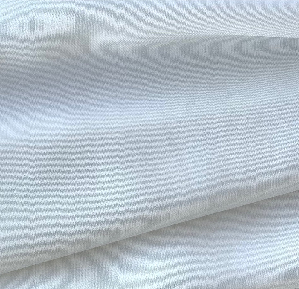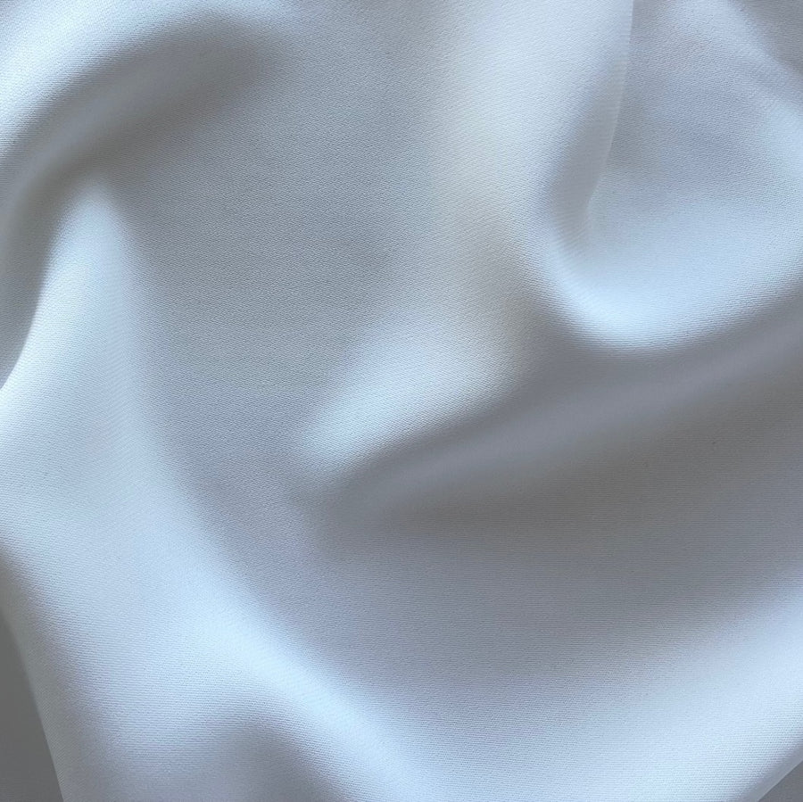 A gorgeous mid to heavy-weight stretch rayon viscose crepe in cloud white - this drapey, wrinkle resistant crepe is similar to silk crepes and is perfect for travel-wear, bridal wear, a top, a beautiful column dress, or a jacket. Made in in Italy. 91% rayon viscose and 9% lycra. 54" wide.