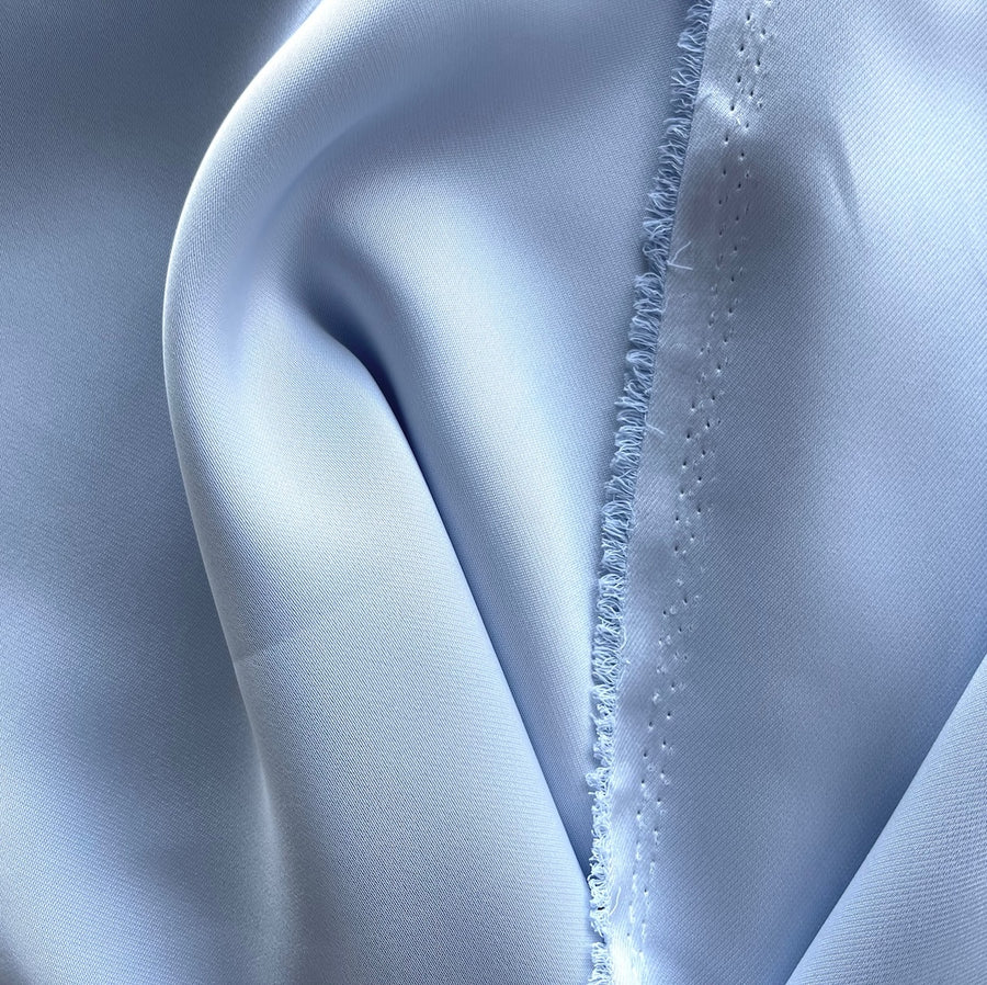 A double-sided polyester satin twill in an ephemeral shade of uranian blue - with a fabulous liquid drape, this satin twill is perfect for a column dress, pants, or jackets. Made in Korea. 100% polyester. 59" wide.
