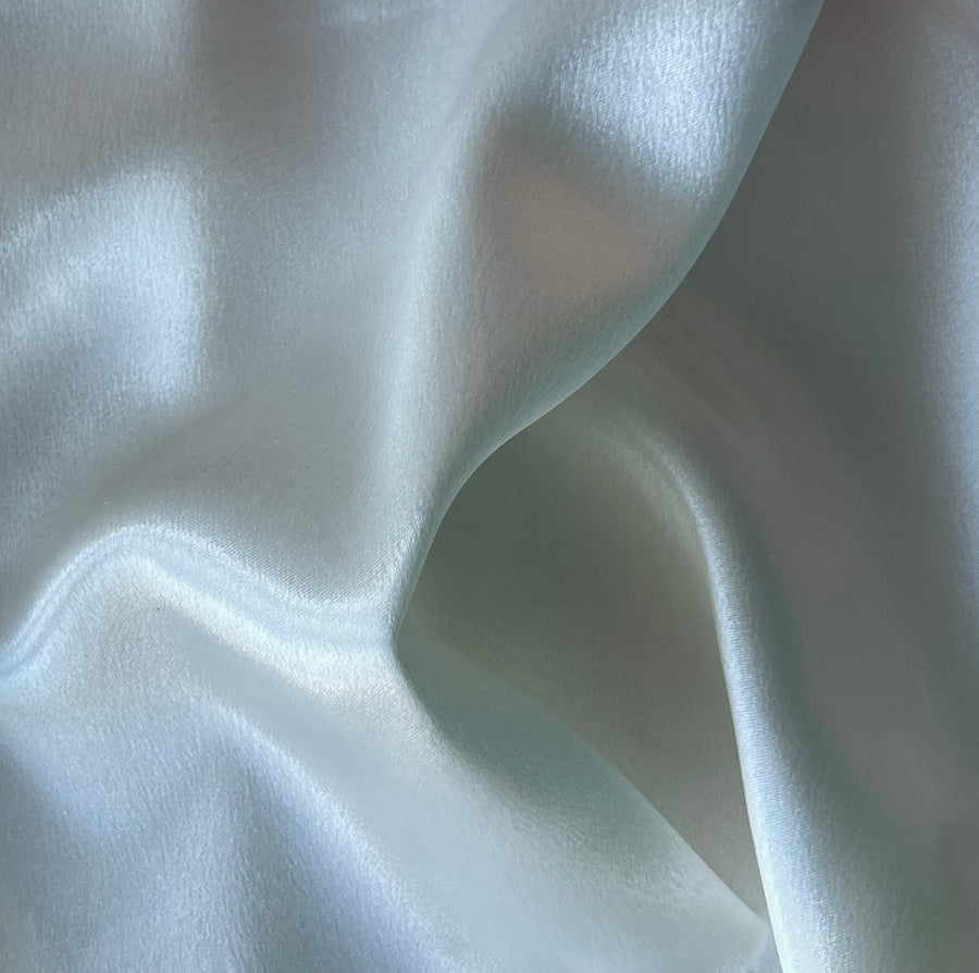 A mid-weight polyester crepe back satin in Ivory Dream - with a satin finish and a crepe weave, this washable, drapey fabric is perfect for bridal-wear, blouses, or dresses. Made in Japan. 100% polyester. 59" wide.