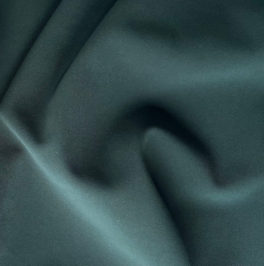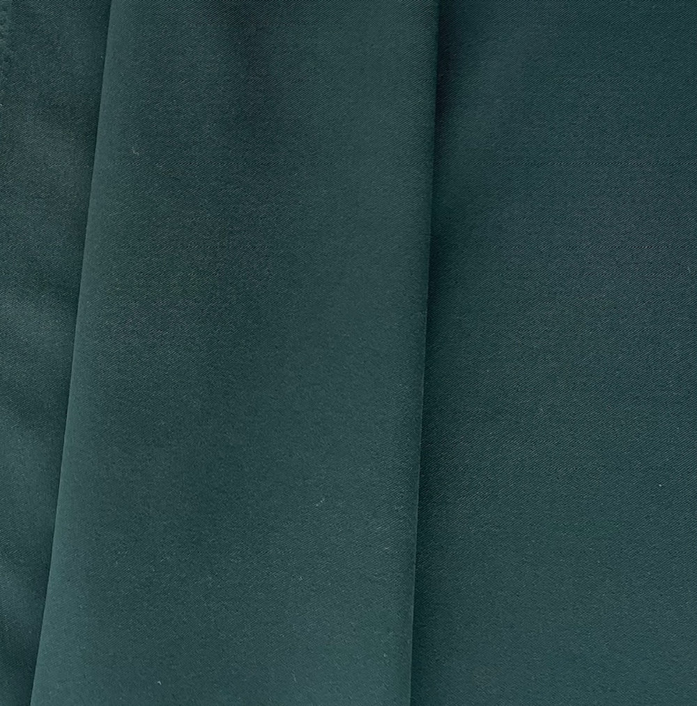 A mid-weight, stretch polyester in a handsome deep hunter green - with a hint of lycra, this polyester is perfect for travel-wear, pants, or a jacket. Made in Japan. 90% polyester and 10% lycra. 45" wide.
