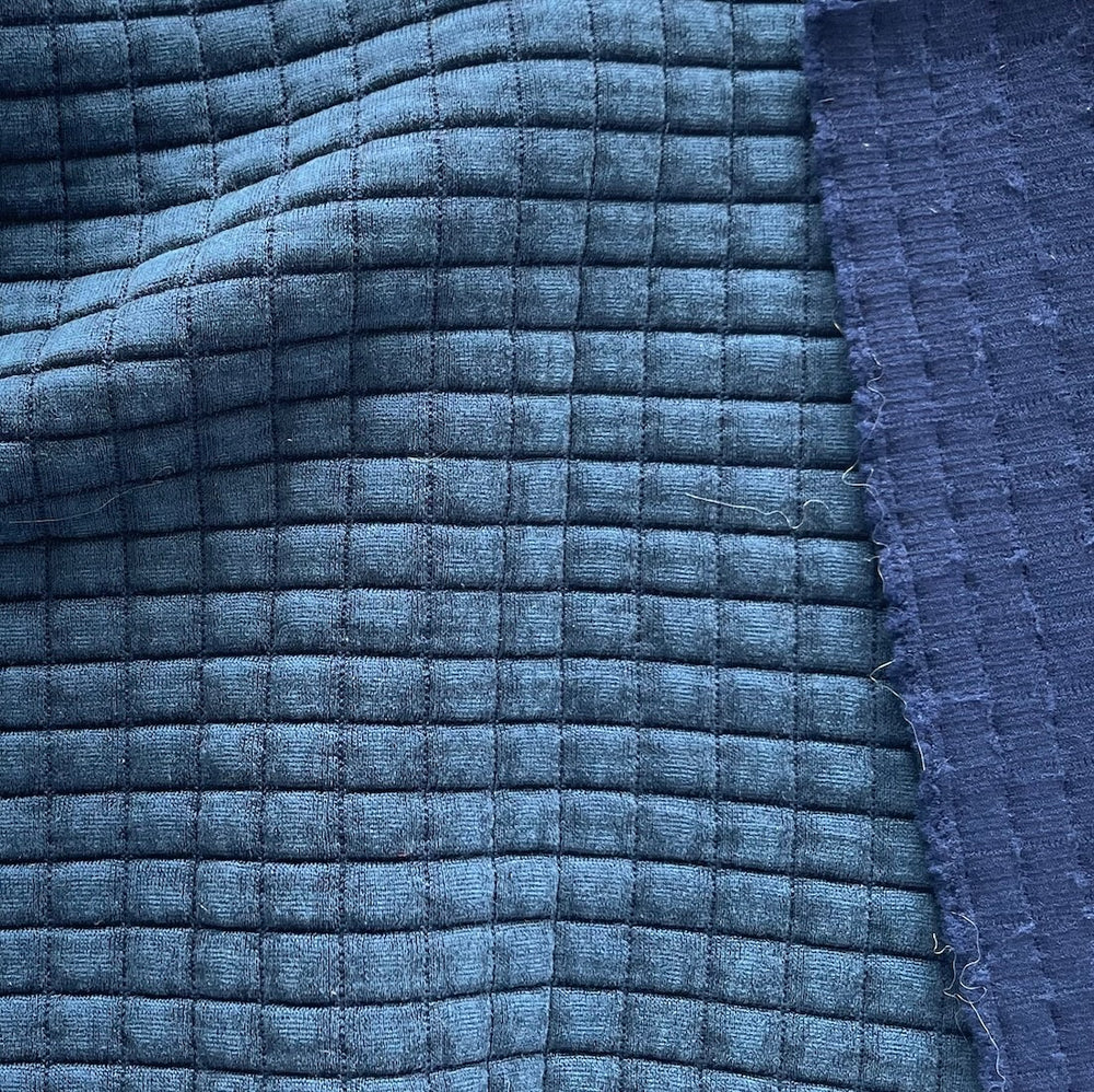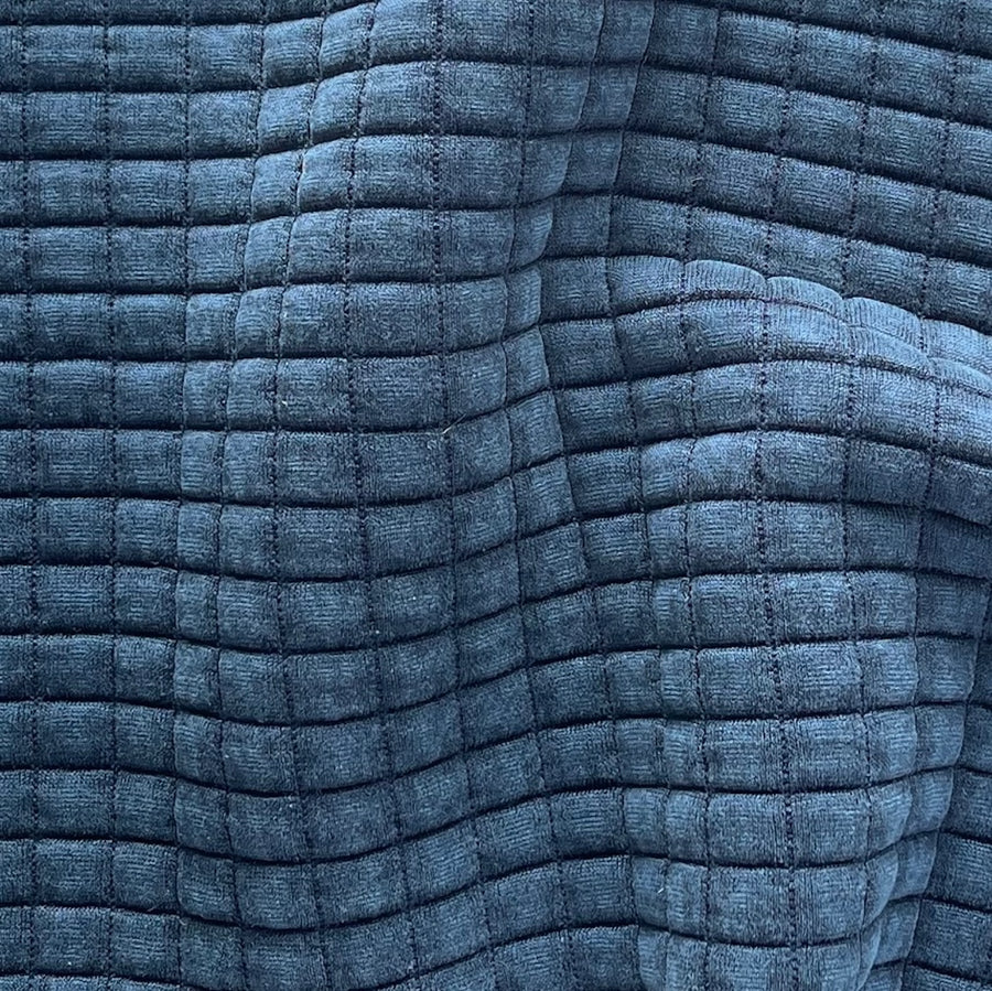 A stretch polyester waffle weave in blueberry - with a hint of lycra for comfort, this soft mock quilted fabric is perfect for a cozy jacket, a robe, or a bed throw. Polyester and lycra. 46" wide.