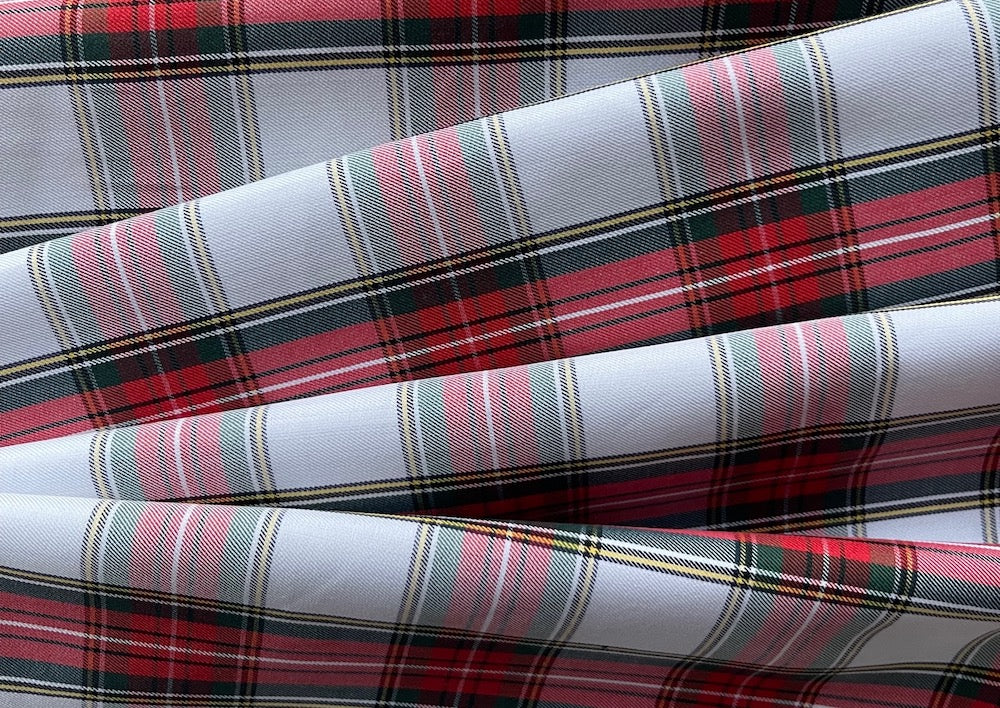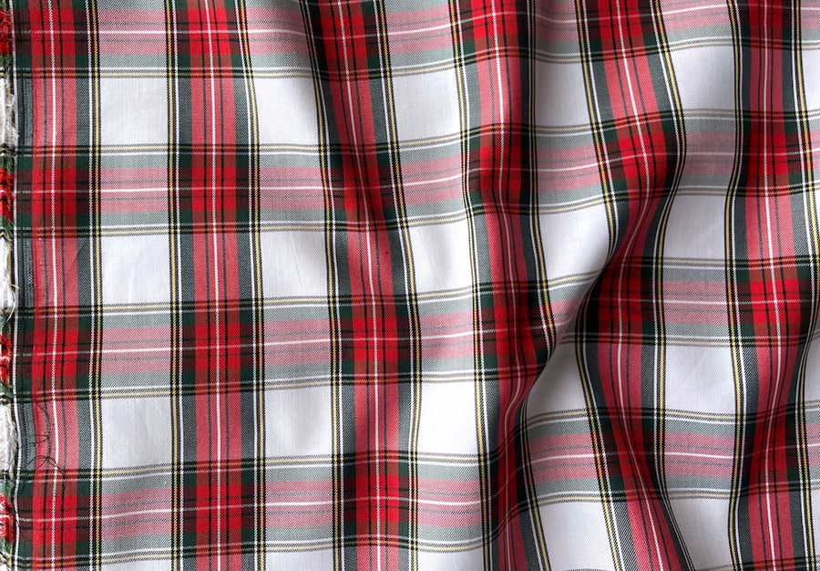 The finest, 2-ply pima cotton shirting in a classic red and white plaid, and with lemon and forest green accents - with its soft and buttery feel, this tightly-woven handsome shirting is perfect for bespoke shirts, pajamas, or skirts. Made in Italy. 100% cotton. 60" wide.