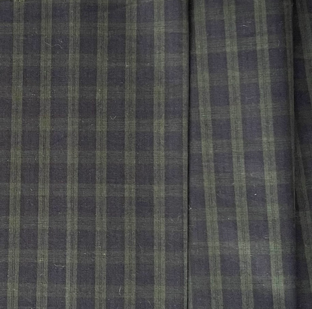 A fine cotton shirting in a traditional pine green, black, and navy Black Watch plaid - this cotton shirting is perfect for shirts, bed linens, summer dresses, or blouses. Made in Italy. 100% cotton. 45" wide.