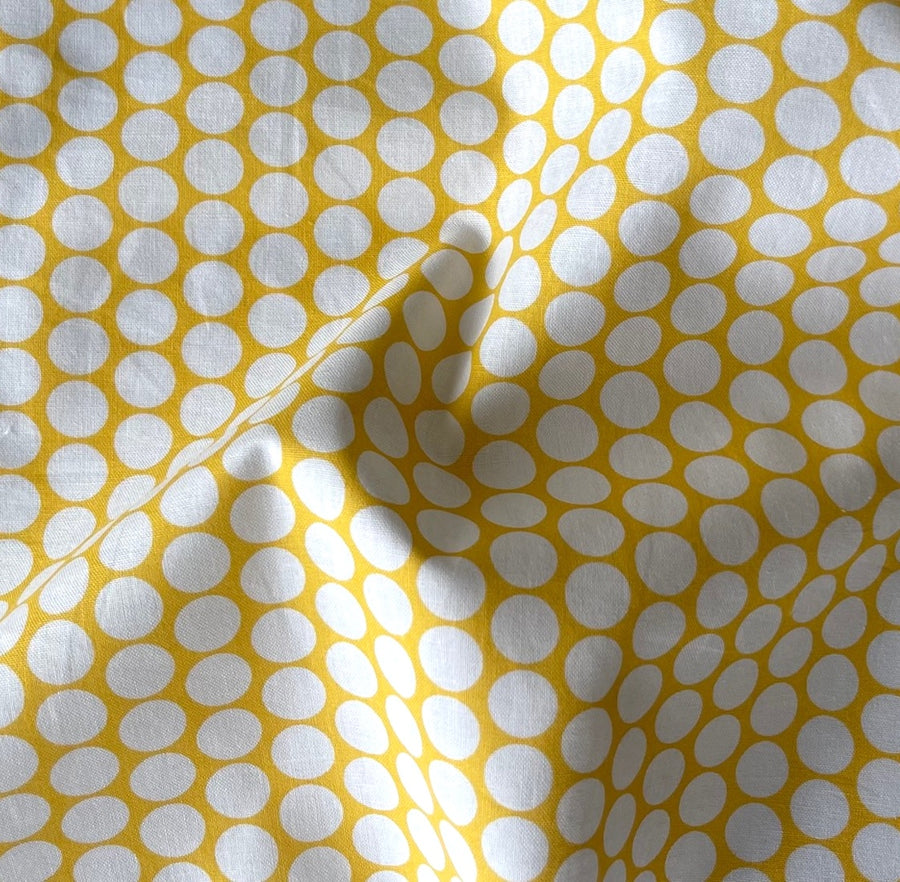 A crisp cotton poplin in a sweet print of white dots on a dandelion yellow background - this smooth print is perfect for blouses, sundresses, and shirts. Made in Italy. 100% cotton. 59" wide.