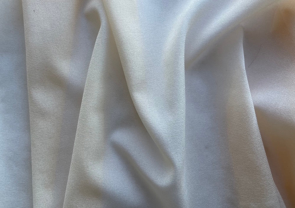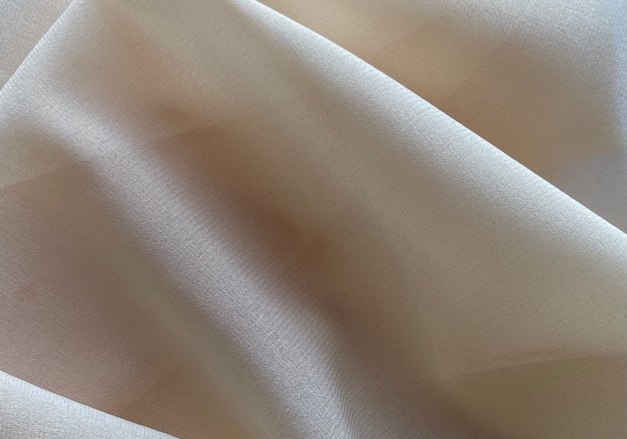 A semi-sheer stretch silk chiffon in soft buttercream - with a touch of lycra, this delicate silk chiffon is fabulous for romantic blouses, sleeves, or luxurious interlining. Made in Italy. 77% silk and 23% lycra blend. 51" wide.