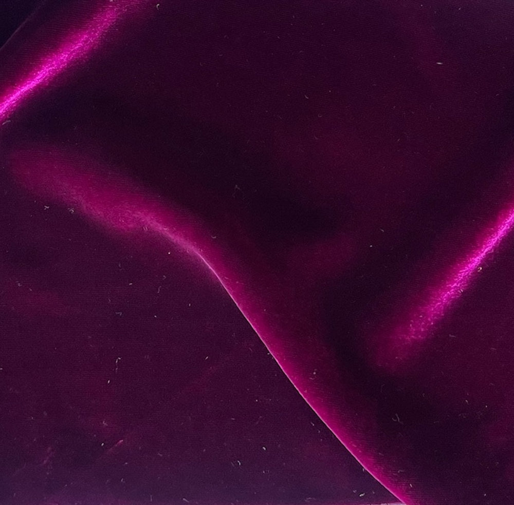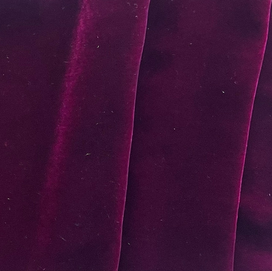 A glamorous supple rayon blend velvet in delectable Byzantine Plum - this fluid, plush velvet is perfect for tops, a long skirt, a dress, special occasion decor, or a wrap. Made in China. 80% rayon and 20% silk. 54" wide.