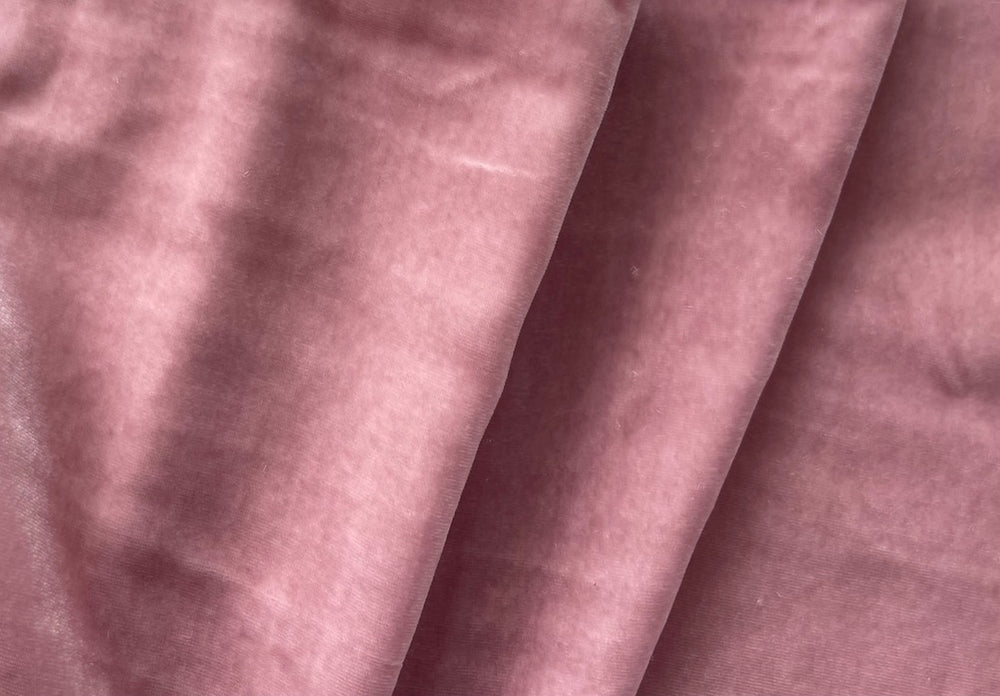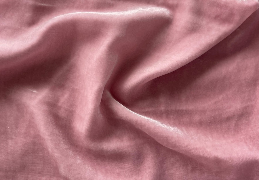 An elegantly supple rayon blend velvet in soft antique mauve - this fluid, romantic velvet is perfect for tops, a long skirt, a dress, special occasion decor, or a wrap. Made in China. 80% rayon and 20% silk. 45" wide.
