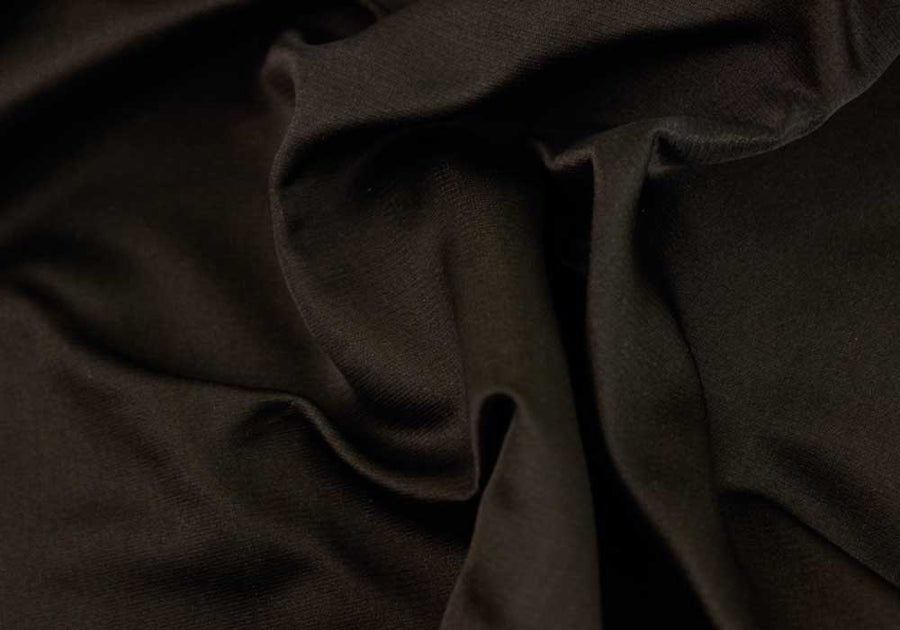 A duchess silk satin, in gleaming cool carob brown - perfect for a structured cocktail dress or an elegant evening wrap. Made in Italy. 100% silk. 54" wide.