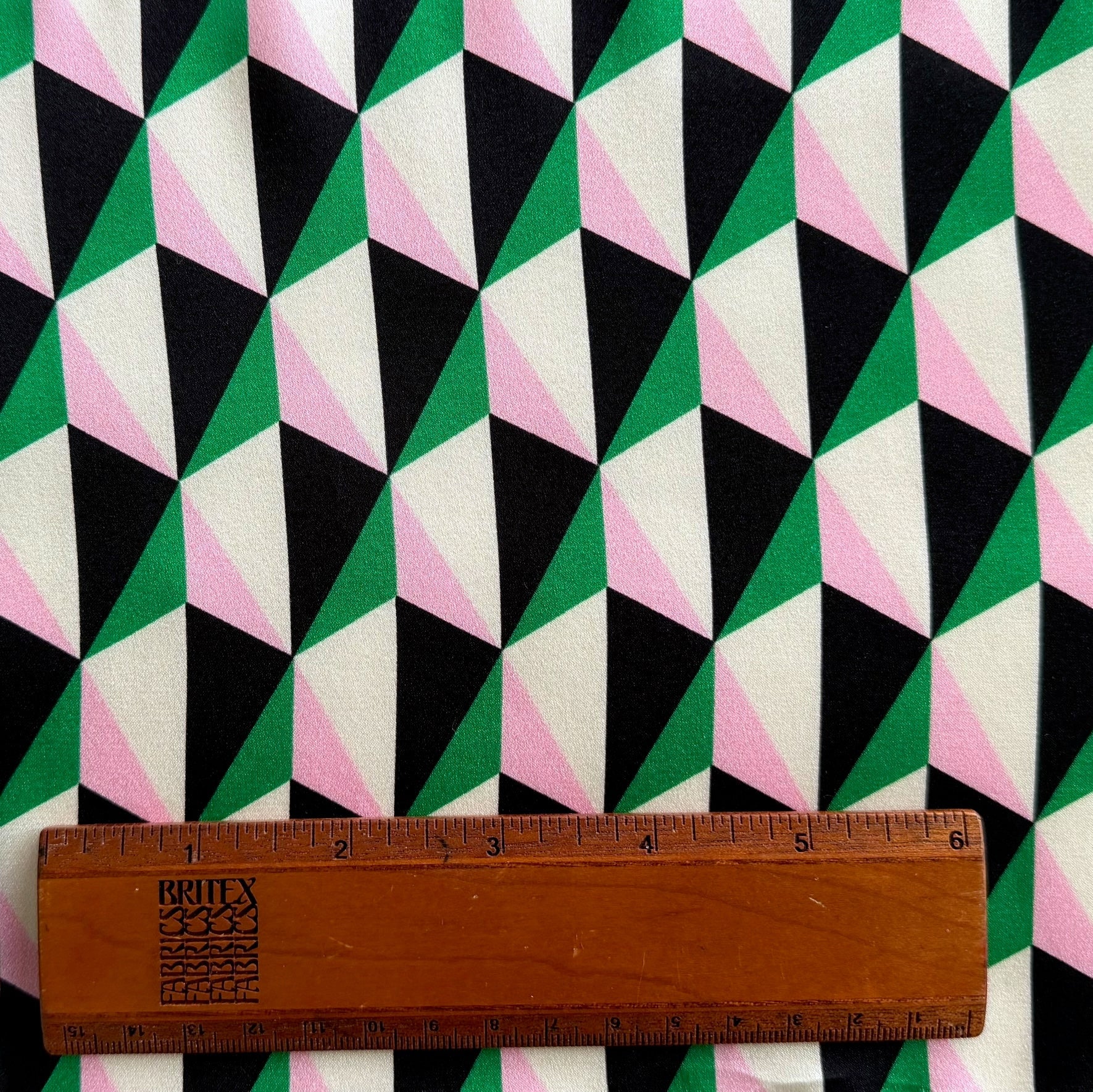 Handsome Blush & Emerald Triangle Frenzy Stretch Silk Satin Charmeuse (Made in Italy)