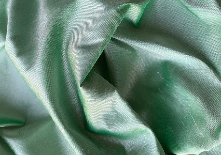 A crisp silk shantung in iridescent lime ice. This lovely silk shimmers lightly, shapes well, and smooths out wrinkles easily -- great for a gown, a wrap, table coverings, evening coats, or more. 100% silk. 54" wide.