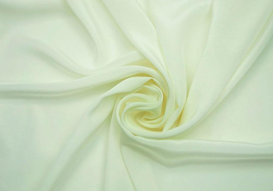 A drapey 16 mm silk crepe de chine in creamy ivory - perfect for a delicate slip dress, bridal wear, or an elegant blouse. 100% silk. 54" wide.