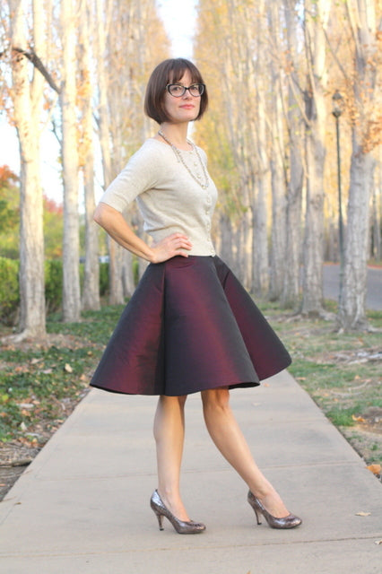 A luxurious mid to heavyweight crisp two-tone silk taffeta in magenta and black. This would make a stunning over-bust corset; lace it with contrasting tea green silk ribbon for subtle glamour...or sew a sweeping floor-length pleated evening skirt. Made in Italy. 100% silk. 56" wide.
