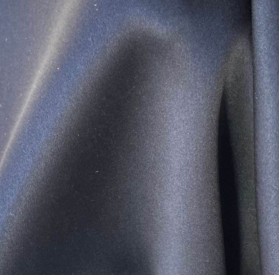 A stretch silk satin charmeuse in deep midnight navy - with a touch of lycra, this dusky silk charmeuse is perfect for blouses, lingerie, wrap tops, or vintage-style dresses. 97% silk and 3% lycra. 40" wide.