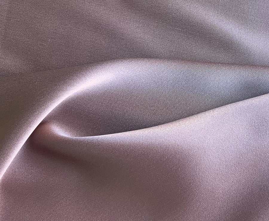 A double-faced silk satin charmeuse, in gleaming moonlight mauve - heavier than most charmeuses, this is perfect for a structured cocktail dress, softly tailored coats, or an elegant evening wrap. Limited yardage available. 100% silk. 54" wide.