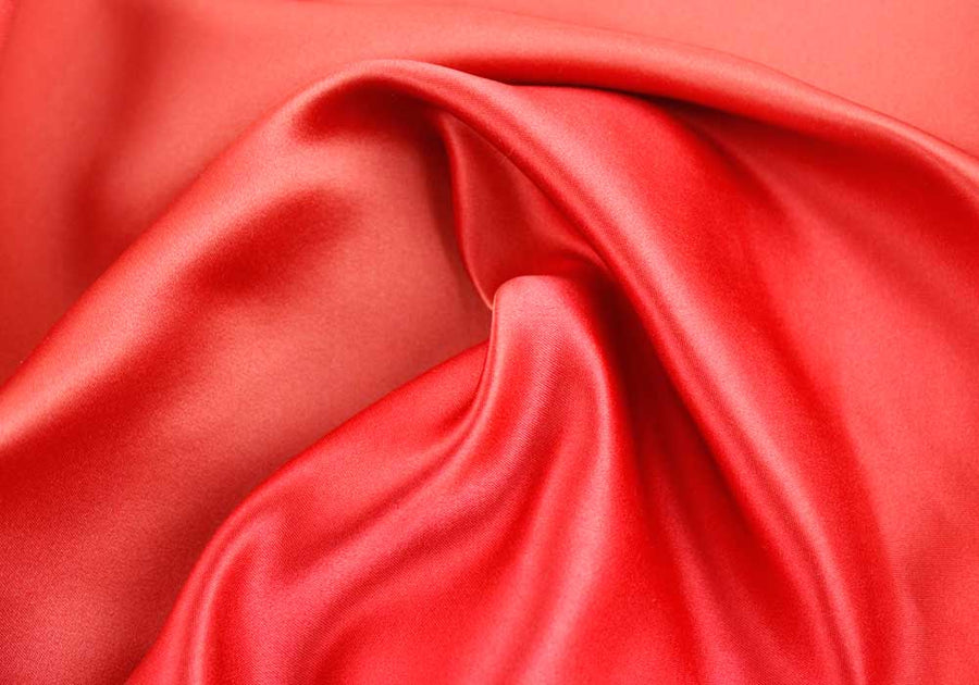 A luxuriously heavy double-faced silk duchess satin in rich vermilion red - heavy, drapey, with a soft sheen sheen, and as elegant inside as it is outside. Made in Italy. 100% silk. 46" wide.